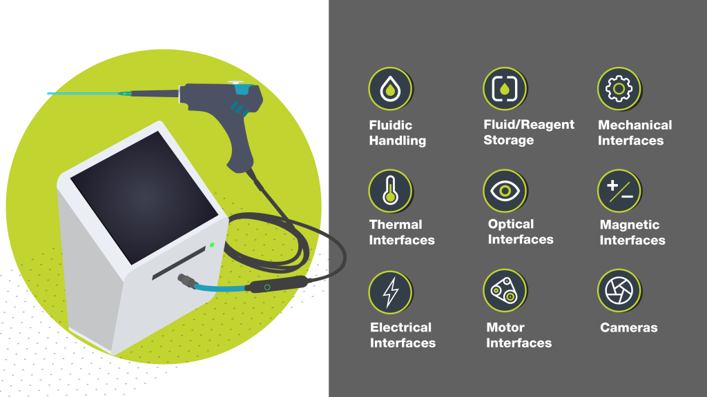 With the push to make consumables smart and connected, specifically for medical devices, many consumables have custom sensors to relay information back to the instrument. It’s essential for the electronics of the consumable to accurately and reliably connect with the instrument so the system can be used as intended. Whether a user loads a consumable or an instrument accepts and automatically loads the consumable, it’s ideal to have one design partner to handle both sides of this interface to ensure that the numerous design details (such as reading distance, physical and electronic interferences) have sound rationale behind them.