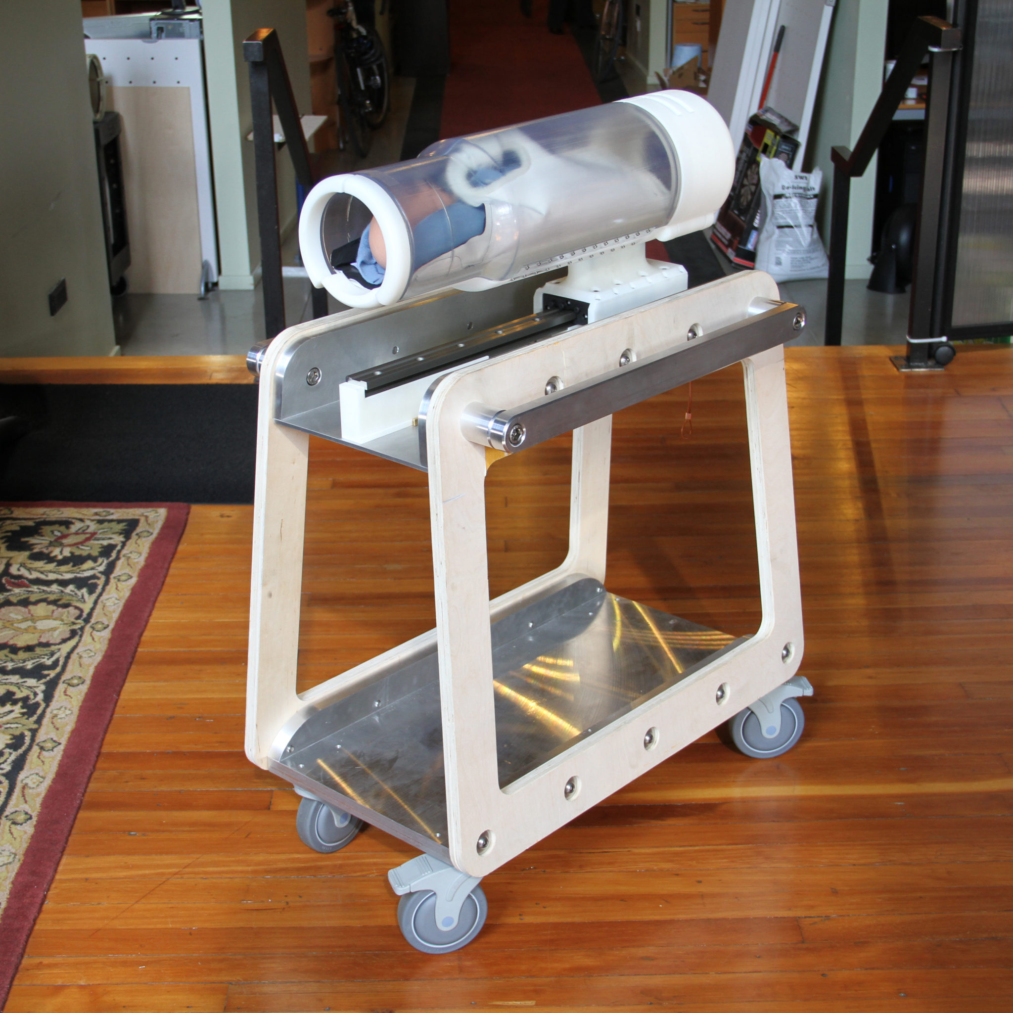 Key Tech was engaged to develop the transfer device and movable cart that would dock to the MRI device. There were many design challenges since NICUs are very specialized workplaces, the working configurations vary, and nurses are very focused on their existing workflows. In other words, there were multiple users to be accommodated – NICU nurses and neonatal patients – and multiple use scenarios that needed to be considered.