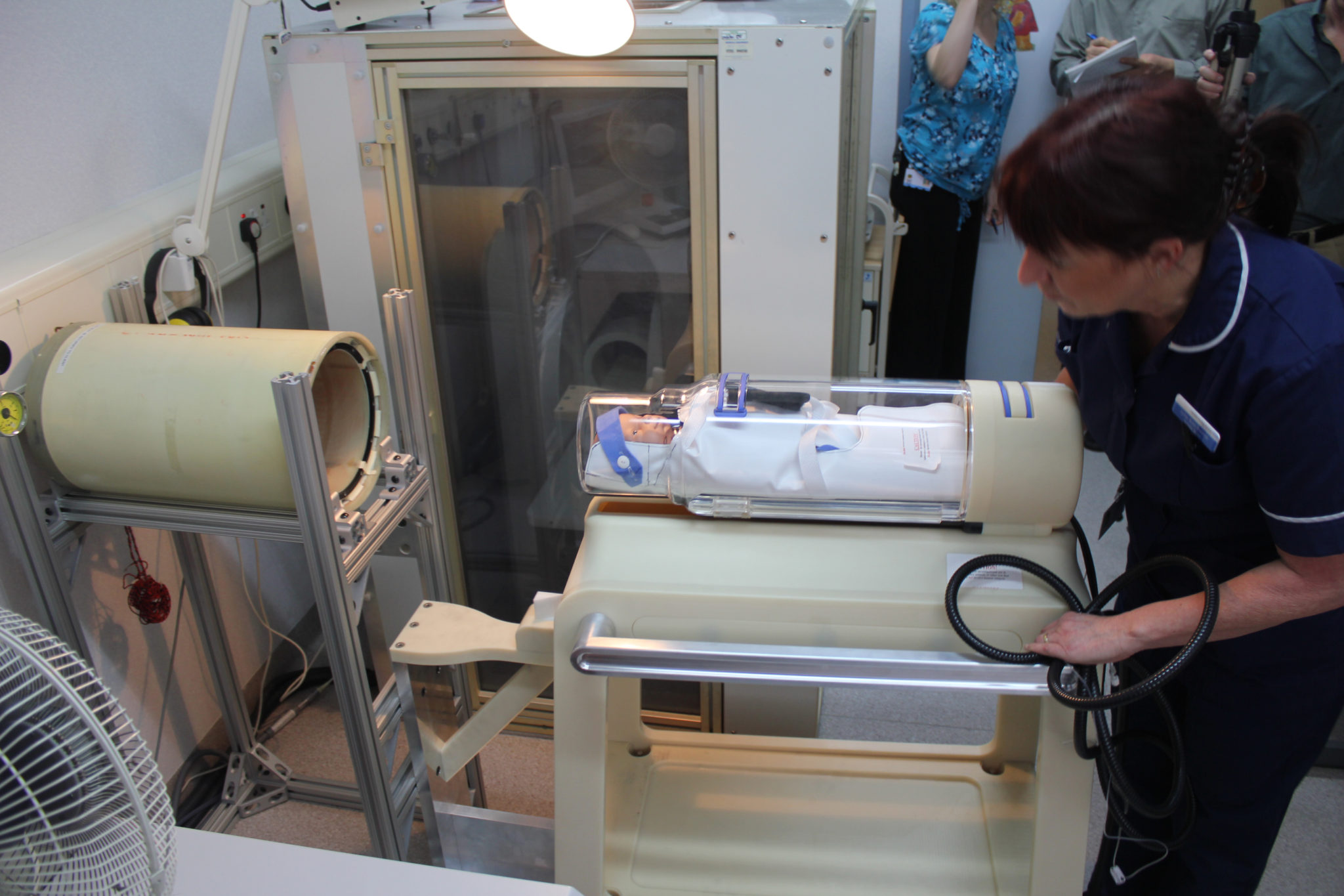 The user-driven design process led to a transfer sling that is installed in the incubator as part of the bedding for a neonatal candidate for MR imaging. The sling can be easily picked up to lift the baby and transfer it into the cart. The versatile sling design achieves a safe transfer that minimally stimulates the baby and assists in managing the multitude of line sets attached to the baby.