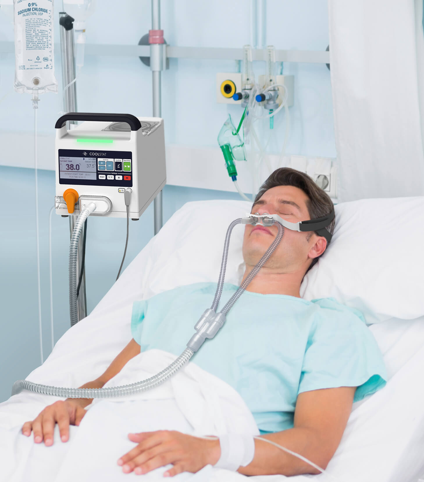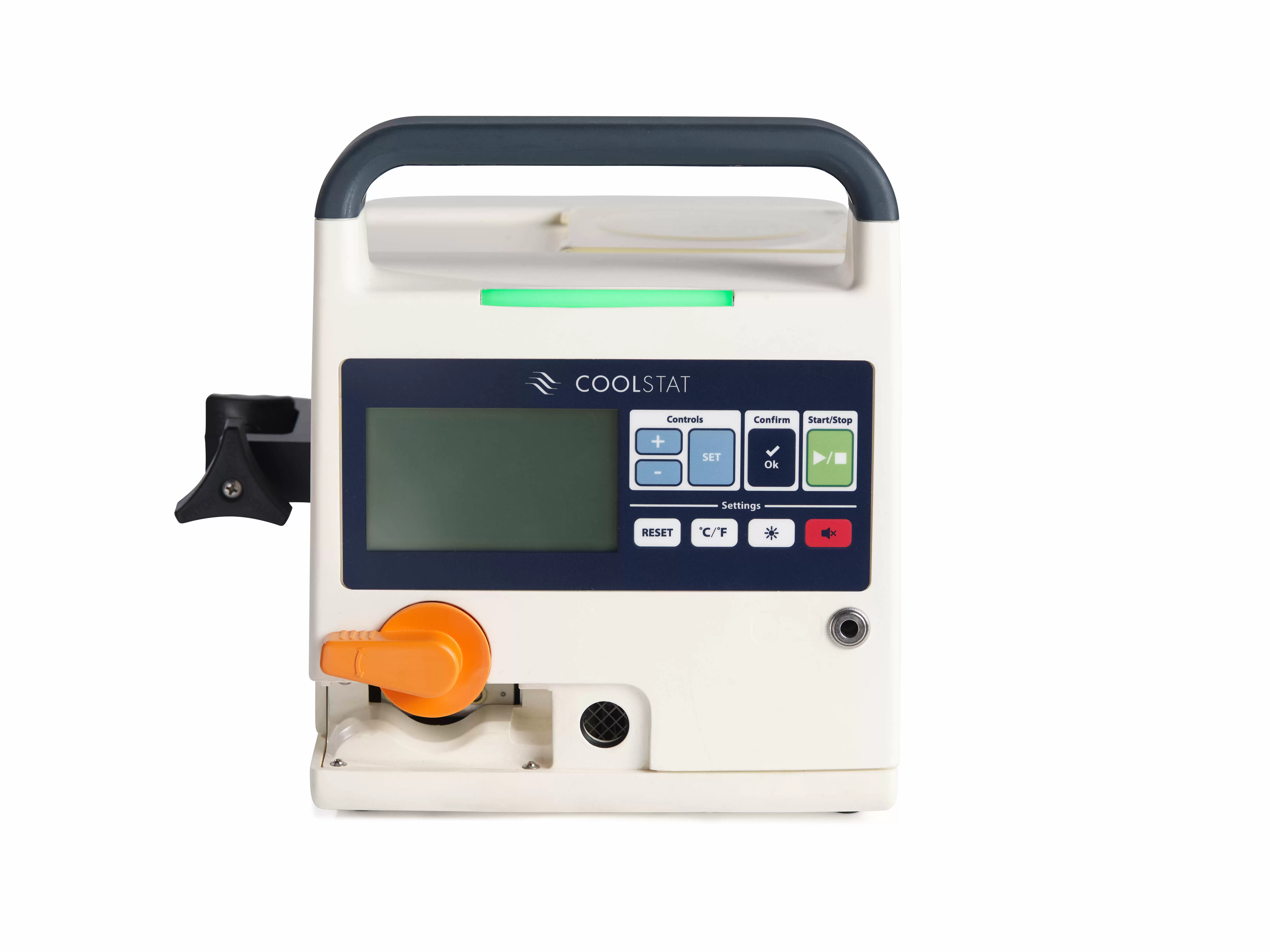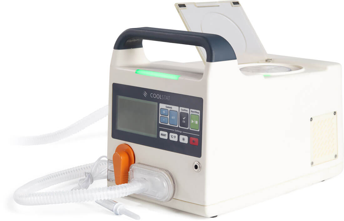 The CoolStat is a completely new way to manage patient temperature. Unlike other cooling systems, the CoolStat does not use cumbersome cooling pads or large refrigeration carts. The CoolStat is the ultimate in simplicity. Using a technique developed at Johns Hopkins Hospital, the CoolStat is a portable device that uses only dry air, delivered to the patient at flow rates about 10x higher than normal respiration, to achieve cooling. Key Tech designed both the device and disposable components. A custom heatsink and fan assembly was created to control the temperature of the delivered air. The simple, intuitive user interface and device workflow were designed based on user research which was also conducted by Key Tech.