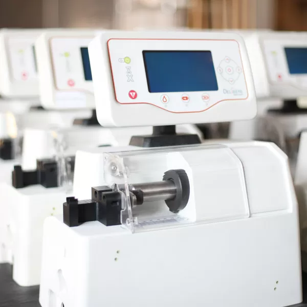 A worldwide healthcare company focusing on innovative devices and pharmaceuticals needed a delivery system to inject precise volumes of a new therapeutic, and they turned to Key Tech for a full-scope engagement. The cart-based delivery system secures a disposable syringe and tubing set and dispenses microliter fluid volumes with nanoliter accuracy. Key Tech developed the durable device, performing system architecture and user interface definition before designing and verifying all electromechanical and firmware elements. The client developed the disposable with a 3rd party manufacturer while in parallel, Key Tech met critical durable development milestones to ensure functional prototypes were available for demonstrations with key opinion leaders. A diverse team of Key Tech designers, engineers and a partner CM collaborated to create and V&V a product compliant with IEC 60601-1 3rd Edition. Key Tech also supported the client in preparing the regulatory documentation required for submission to the FDA.